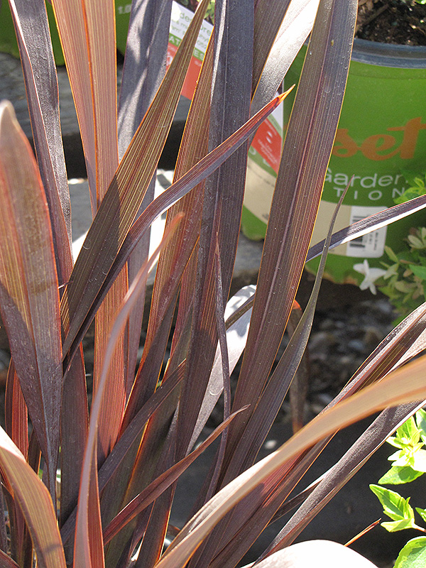 Black Adder™ New Zealand Flax will grow to be about 4 feet tall at maturity, with a spread of 3 feet. When grown in masses or used as a bedding plant, individual plants should be spaced approximately 30 inches apart. Although it's not a true annual, this plant can be expected to behave as an annual in our climate if left outdoors over the winter, usually needing replacement the following year. As such, gardeners should take into consideration that it will perform differently than it would in its native habitat.