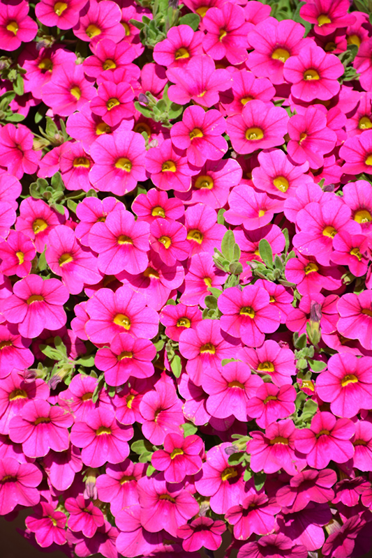 Million Bells® Compact Brilliant Pink Calibrachoa is draped in stunning hot pink trumpet-shaped flowers with yellow throats at the ends of the stems from late spring to early fall. Its small oval leaves remain green in colour throughout the season.