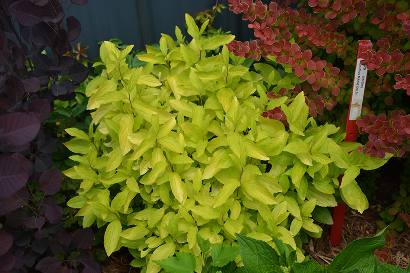A dense, mounded shrub with bright golden-yellow shiny foliage; a prolific bloomer, covered in clusters of pink flowers from early to late summer; perfect for borders and rock gardens; very hardy and drought tolerant once established
