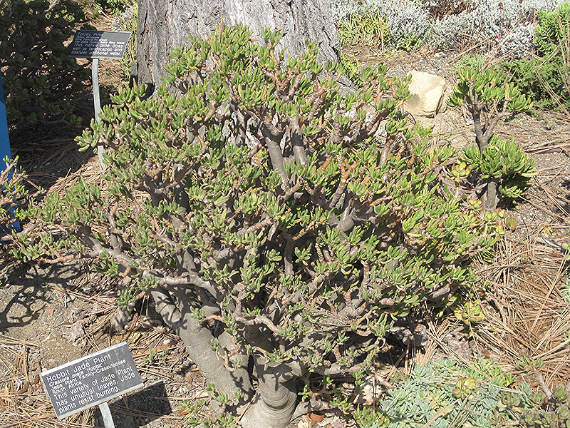 Hobbit Jade Plant is a multi-stemmed evergreen shrub with an upright spreading habit of growth. Its average texture blends into the landscape, but can be balanced by one or two finer or coarser trees or shrubs for an effective composition.
