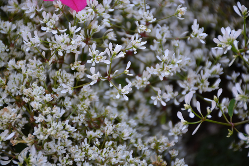Diamond Delight® Euphorbia features airy clusters of double white flowers at the ends of the stems from mid spring to mid fall. The flowers are excellent for cutting. Its small oval leaves remain green in colour throughout the season.