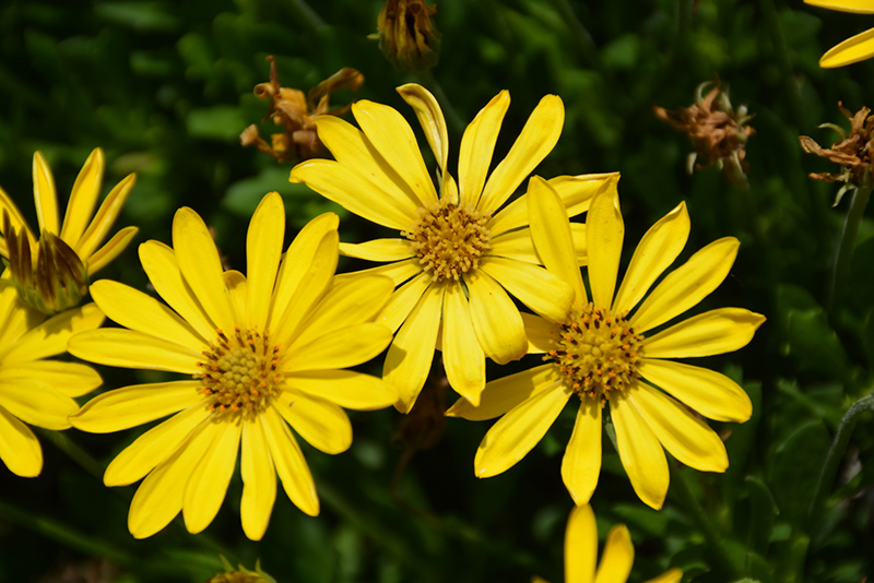 Bright Lights™ Yellow African Daisy is clothed in stunning yellow daisy flowers with gold eyes at the ends of the stems from late spring to mid fall. The flowers are excellent for cutting. Its spiny narrow leaves remain green in colour throughout the season.
