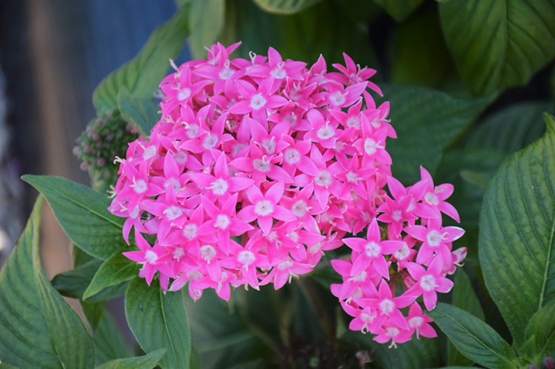 Butterfly™ Deep Pink Star Flower features showy corymbs of hot pink star-shaped flowers with white eyes at the ends of the stems from late spring to mid fall. Its large textured pointy leaves remain forest green in colour throughout the year.