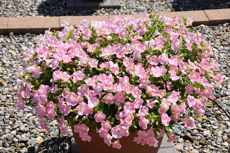 Surfinia® Heartbeat Petunia is a fine choice for the garden, but it is also a good selection for planting in outdoor containers and hanging baskets. Because of its trailing habit of growth, it is ideally suited for use as a 'spiller' in the 'spiller-thriller-filler' container combination; plant it near the edges where it can spill gracefully over the pot. Note that when growing plants in outdoor containers and baskets, they may require more frequent waterings than they would in the yard or garden.