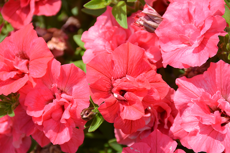 Surfinia® Summer Double™ Salmon Petunia is blanketed in stunning double salmon trumpet-shaped flowers at the ends of the stems from mid spring to mid fall. Its pointy leaves remain green in colour throughout the season.