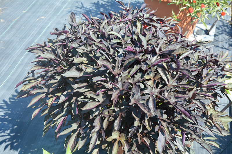 South of the Border™ Black Beans Sweet Potato Vine is a dense herbaceous annual with a trailing habit of growth, eventually spilling over the edges of hanging baskets and containers. Its relatively fine texture sets it apart from other garden plants with less refined foliage.