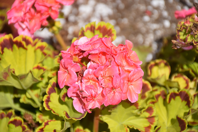 A spectacular variety presenting bright salmon-pink flowers, over mounds of vibrant chartreuse foliage with contrasting copper margins all season long; a wonderful addition to containers or landscapes
