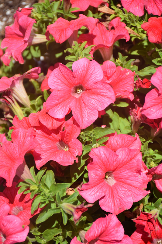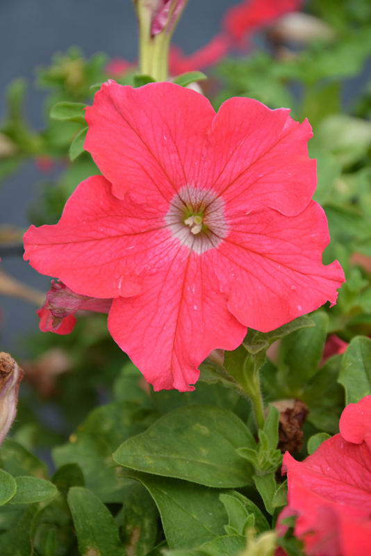 A wonderful selection for containers, baskets, or landscape use; a brilliant display of large coral flowers; weather resistant and vigorous; blooms consistently throughout the season