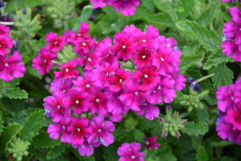 Espadrille™ Purple Haze Verbena features showy clusters of purple star-shaped flowers with white eyes and dark red centers at the ends of the stems from late spring to mid fall. The flowers are excellent for cutting. Its tiny tomentose narrow leaves remain green in colour throughout the season.