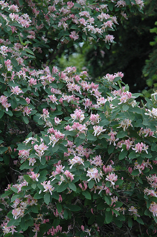 Tatarian Honeysuckle is covered in stunning shell pink flowers with yellow anthers along the branches in late spring. It features an abundance of magnificent red berries from mid to late summer. It has green deciduous foliage. The oval leaves do not develop any appreciable fall colour.