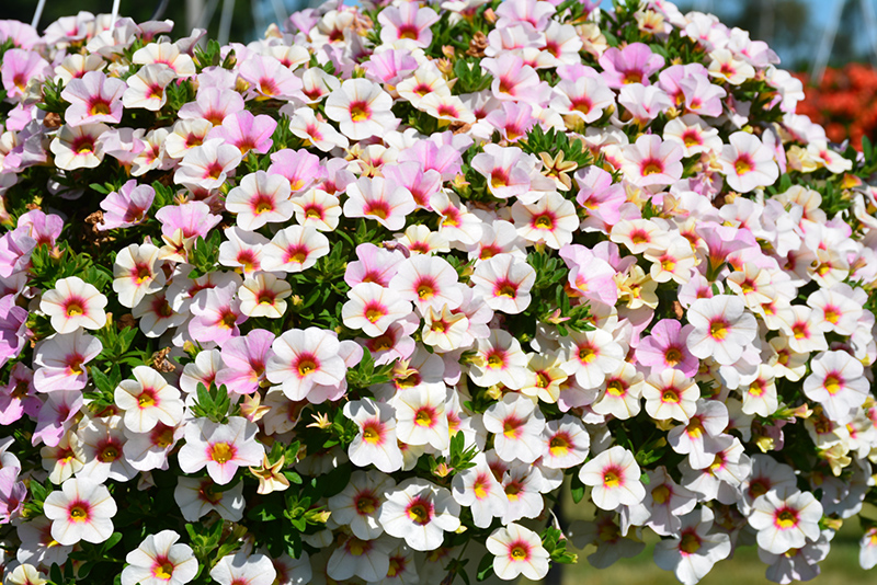 This outstanding, vigorous variety presents masses of white blooms with cherry red eyezones and pinkish highlights; a perfect selection for beds, containers and hanging baskets