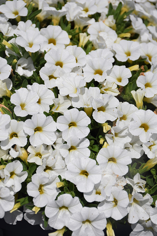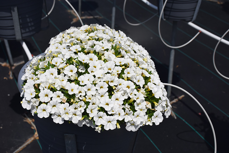 Calipetite® White Calibrachoa is a fine choice for the garden, but it is also a good selection for planting in outdoor containers and hanging baskets. It is often used as a 'filler' in the 'spiller-thriller-filler' container combination, providing a mass of flowers against which the thriller plants stand out. Note that when growing plants in outdoor containers and baskets, they may require more frequent waterings than they would in the yard or garden.