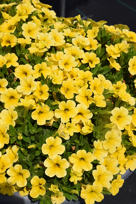 Calipetite® Yellow Calibrachoa is a fine choice for the garden, but it is also a good selection for planting in outdoor containers and hanging baskets. It is often used as a 'filler' in the 'spiller-thriller-filler' container combination, providing a mass of flowers against which the thriller plants stand out. Note that when growing plants in outdoor containers and baskets, they may require more frequent waterings than they would in the yard or garden.