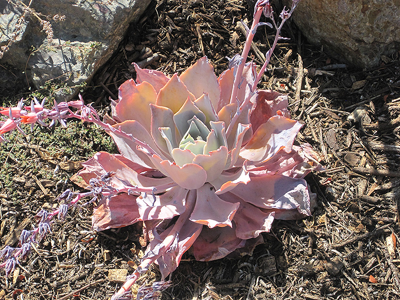 Afterglow Echeveria is a dense herbaceous evergreen perennial with tall flower stalks held atop a low mound of foliage. Its relatively fine texture sets it apart from other garden plants with less refined foliage.