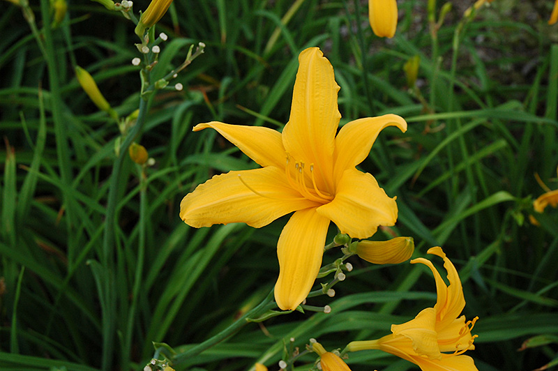 Bold yellow flowers contrasting against arching green foliage make an appearance early to mid season; easy to grow and low maintenance; perfect for accent color in borders and beds; drought tolerant once established