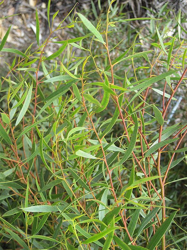 Moon Lagoon Dwarf Eucalyptus has attractive bluish-green evergreen foliage which emerges silvery blue in spring on a plant with an upright spreading habit of growth. The fragrant narrow leaves are highly ornamental and remain bluish-green throughout the winter. The gray bark and brick red branches are extremely showy and add significant winter interest.