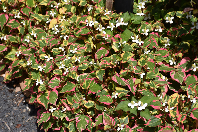 Chameleon Houttuynia will grow to be about 12 inches tall at maturity, with a spread of 3 feet. When grown in masses or used as a bedding plant, individual plants should be spaced approximately 32 inches apart. Its foliage tends to remain dense right to the ground, not requiring facer plants in front. It grows at a fast rate, and under ideal conditions can be expected to live for approximately 10 years. As an herbaceous perennial, this plant will usually die back to the crown each winter, and will regrow from the base each spring. Be careful not to disturb the crown in late winter when it may not be readily seen!