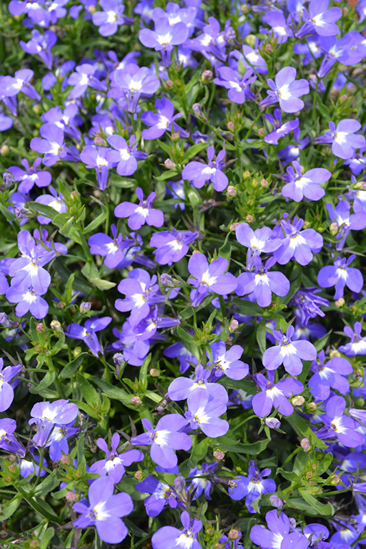 Hot® Giant Blue Lobelia is covered in stunning sky blue flowers with lavender overtones and white centers at the ends of the stems from mid spring to early fall. The flowers are excellent for cutting. Its pointy leaves remain green in colour throughout the season.