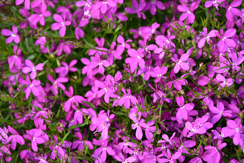 Hot® Purple Star Lobelia is covered in stunning purple flowers with hot pink overtones and white centers at the ends of the stems from mid spring to early fall. The flowers are excellent for cutting. Its small pointy leaves remain olive green in colour throughout the season.