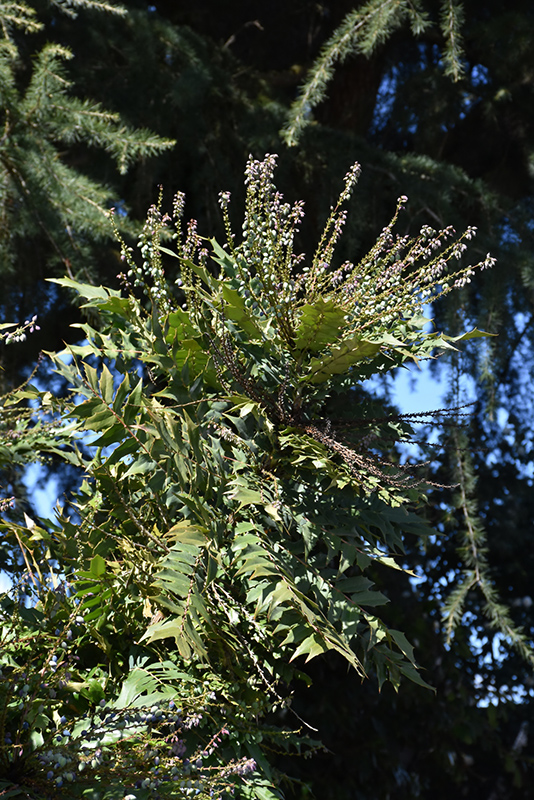 Charity Grape Holly will grow to be about 10 feet tall at maturity, with a spread of 5 feet. It tends to fill out right to the ground and therefore doesn't necessarily require facer plants in front, and is suitable for planting under power lines. It grows at a slow rate, and under ideal conditions can be expected to live for approximately 20 years.