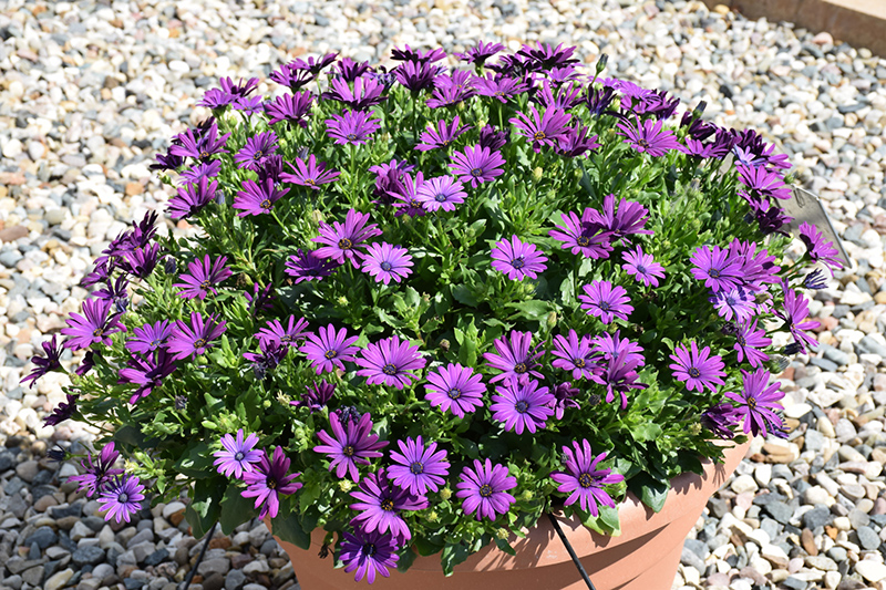 Margarita Cool Purple African Daisy is a fine choice for the garden, but it is also a good selection for planting in outdoor containers and hanging baskets. It is often used as a 'filler' in the 'spiller-thriller-filler' container combination, providing a mass of flowers against which the thriller plants stand out. Note that when growing plants in outdoor containers and baskets, they may require more frequent waterings than they would in the yard or garden.