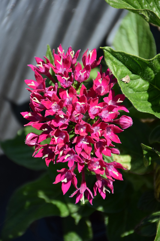 Starcluster™ Violet Star Flower features showy corymbs of violet star-shaped flowers with rose overtones and lavender eyes at the ends of the stems from late spring to early fall. Its large textured pointy leaves remain forest green in colour throughout the year.