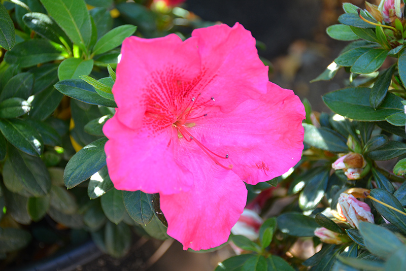 Nuccio's Carnival Azalea is covered in stunning rose trumpet-shaped flowers with a scarlet blotch at the ends of the branches from mid to late spring, which emerge from distinctive dark red flower buds. It has dark green evergreen foliage which emerges light green in spring. The glossy oval leaves remain dark green throughout the winter.