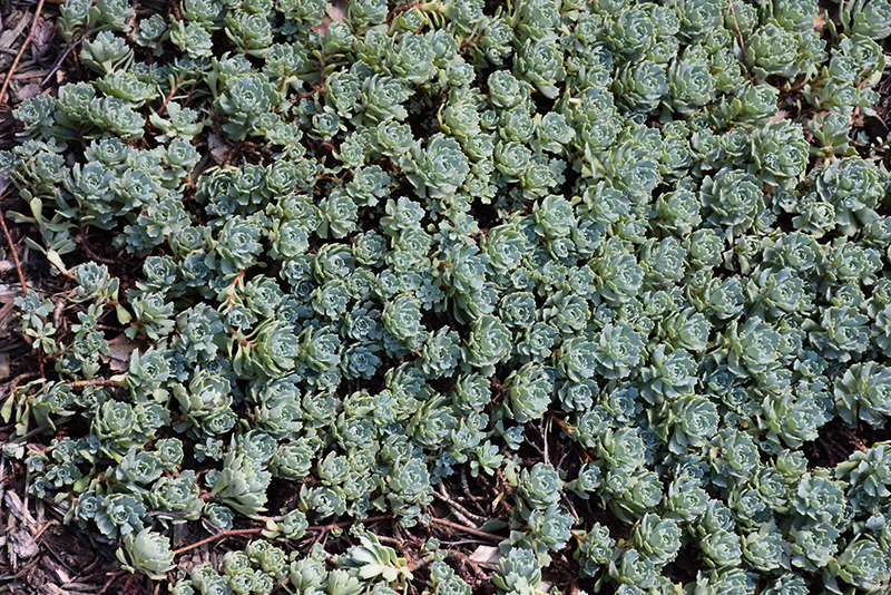 An outstanding groundcover sedum, producing clusters of tiny white star shaped flowers in summer; tough and easy to grow; perfectly formed rosettes of blue-green foliage have scalloped and notched edges, giving it a lacy look