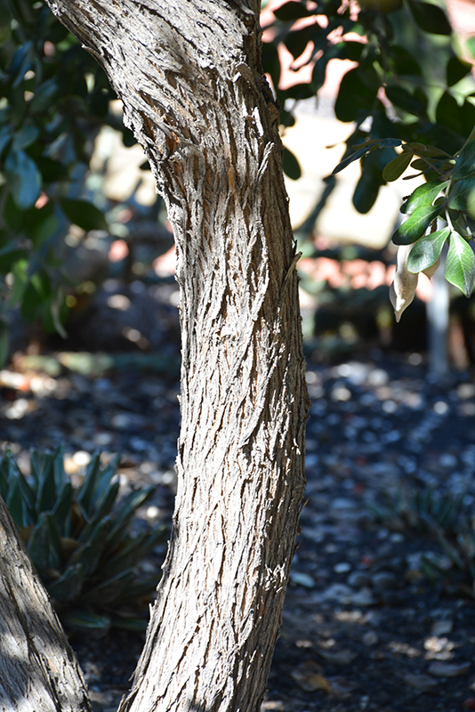 An evergreen, very drought tolerant large shrub or small tree with thick, oval, waxy leaves; extremely fragrant purple, pea like flowers, appear in large clusters in early spring, followed by tan pods; great for waterwise landscapes