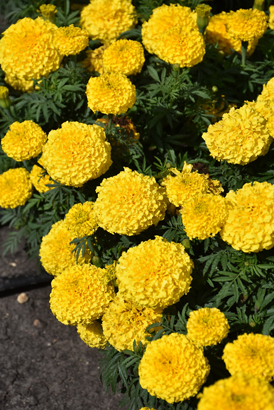 This outstanding compact selection produces huge, dense, yellow flower heads; impressive along borders or in patio containers; long lasting blooms