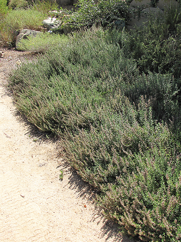 A shrubby, woody, clump forming evergreen with attractive fragrant foliage that looks like small oak leaves; lavender to pinkish purple flowers in late spring to early summer; excellent for edging, or small scale groundcover