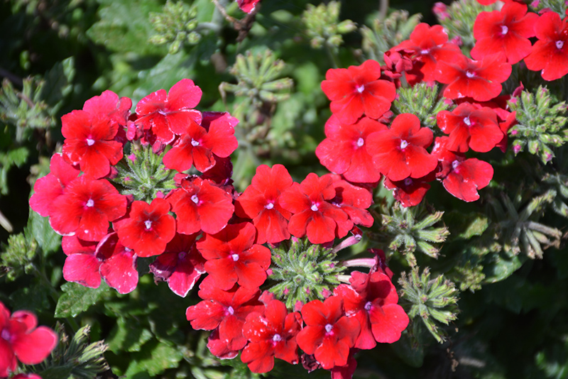Empress™ Flair Merlot Verbena features showy clusters of red star-shaped flowers with white eyes and crimson centers at the ends of the stems from late spring to mid fall. The flowers are excellent for cutting. Its tiny tomentose narrow leaves remain green in colour throughout the season.