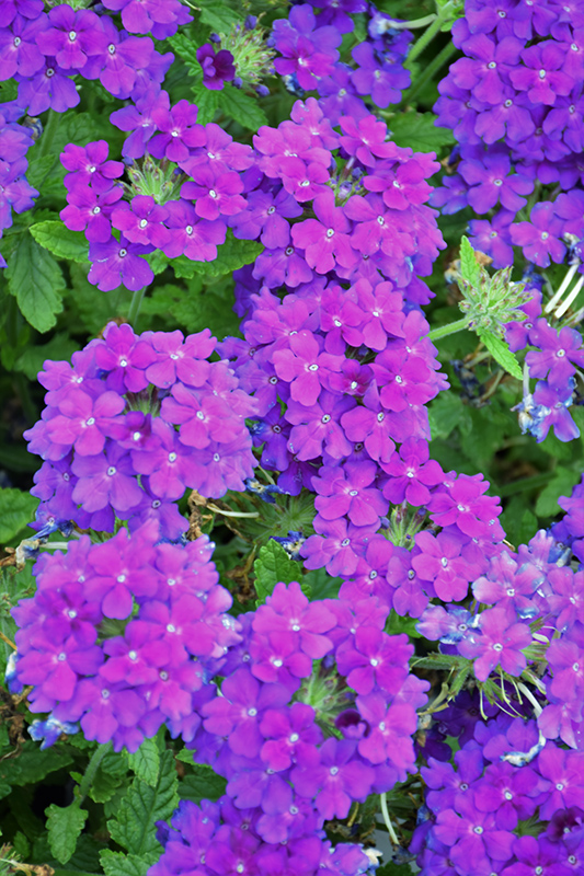 Empress™ Sun Violet Verbena features showy clusters of violet star-shaped flowers with white eyes at the ends of the stems from late spring to mid fall. The flowers are excellent for cutting. Its tiny tomentose narrow leaves remain green in colour throughout the season.