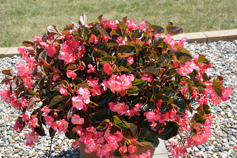 Megawatt™ Pink Bronze Leaf Begonia is a fine choice for the garden, but it is also a good selection for planting in outdoor containers and hanging baskets. With its upright habit of growth, it is best suited for use as a 'thriller' in the 'spiller-thriller-filler' container combination; plant it near the center of the pot, surrounded by smaller plants and those that spill over the edges. It is even sizeable enough that it can be grown alone in a suitable container. Note that when growing plants in outdoor containers and baskets, they may require more frequent waterings than they would in the yard or garden.