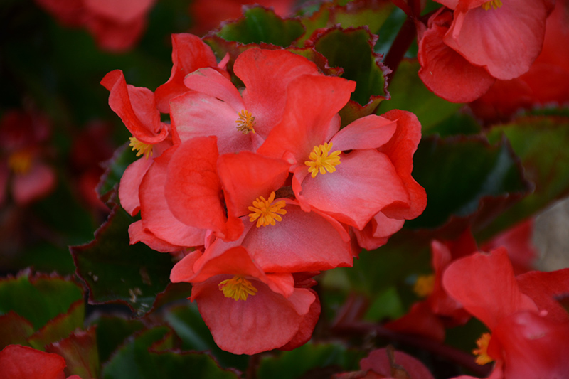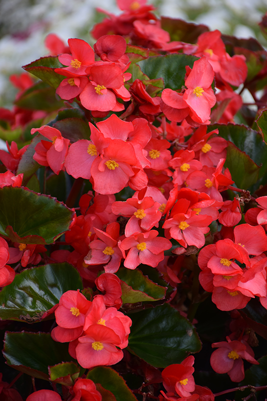 Megawatt™ Red Green Leaf Begonia is an herbaceous annual with an upright spreading habit of growth. Its medium texture blends into the garden, but can always be balanced by a couple of finer or coarser plants for an effective composition.