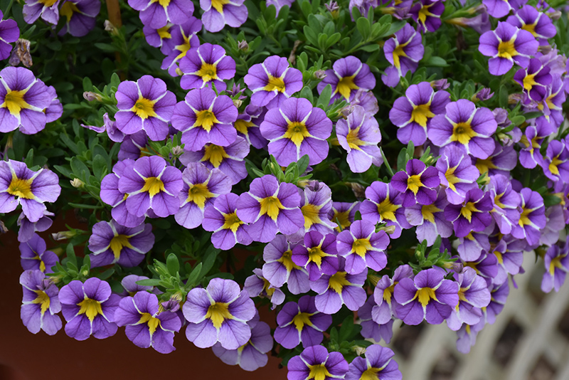 StarShine™ Violet Calibrachoa will grow to be about 10 inches tall at maturity, with a spread of 16 inches. When grown in masses or used as a bedding plant, individual plants should be spaced approximately 12 inches apart. Its foliage tends to remain low and dense right to the ground. This fast-growing annual will normally live for one full growing season, needing replacement the following year.