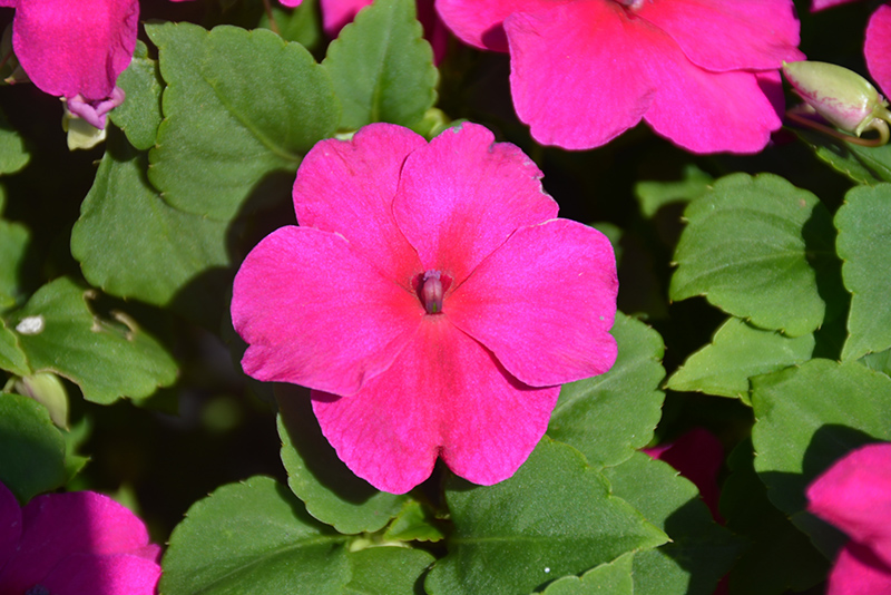 Super Elfin® XP Violet Impatiens will grow to be about 10 inches tall at maturity, with a spread of 12 inches. When grown in masses or used as a bedding plant, individual plants should be spaced approximately 10 inches apart. Its foliage tends to remain low and dense right to the ground. This fast-growing annual will normally live for one full growing season, needing replacement the following year.