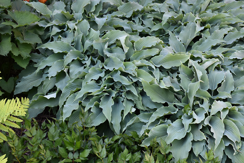 A medium sized variety featuring mounds of oval, powder blue leaves with wavy edges; lavender flowers appear in midsummer on tall scapes; adds texture, contrast and color to shaded beds, borders and containers; low maintenance and easy to grow