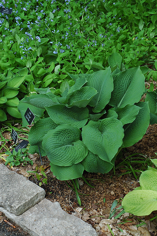 Fond Hope Hosta will grow to be about 24 inches tall at maturity extending to 32 inches tall with the flowers, with a spread of 3 feet. When grown in masses or used as a bedding plant, individual plants should be spaced approximately 30 inches apart. Its foliage tends to remain dense right to the ground, not requiring facer plants in front. It grows at a medium rate, and under ideal conditions can be expected to live for approximately 10 years. As an herbaceous perennial, this plant will usually die back to the crown each winter, and will regrow from the base each spring. Be careful not to disturb the crown in late winter when it may not be readily seen!