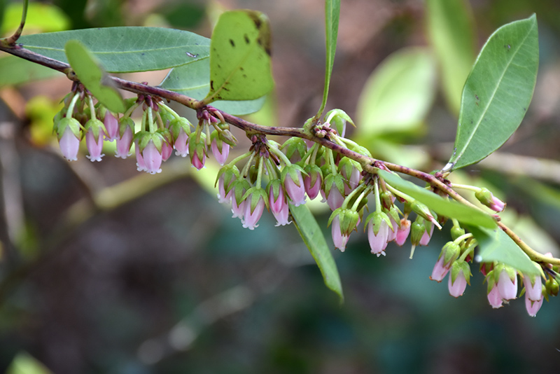 Fetterbush is draped in stunning clusters of fragrant white bell-shaped flowers with pink overtones hanging below the branches from late winter to early spring. It has attractive dark green evergreen foliage which emerges light green in spring. The glossy oval leaves are highly ornamental and remain dark green throughout the winter. It features abundant showy dark brown capsules with black overtones from late summer to mid fall.
