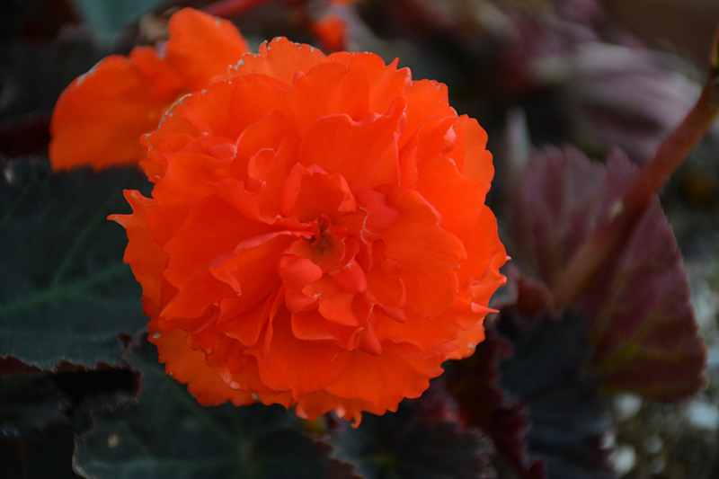Fragrant Falls® Orange Begonia features dainty fragrant nodding double orange orchid-like flowers with scarlet overtones at the ends of the stems from mid spring to early fall. Its attractive serrated heart-shaped leaves emerge light green in spring, turning dark green in colour with curious fuchsia undersides the rest of the year.