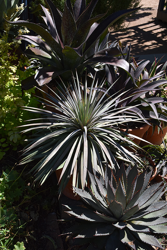 This attractive selection produces a rosette of narrow blue-green sword-like leaves with a silvery cast, that arch outward; grown primarily for foliage; a great low-maintenance patio plant; must have good drainage