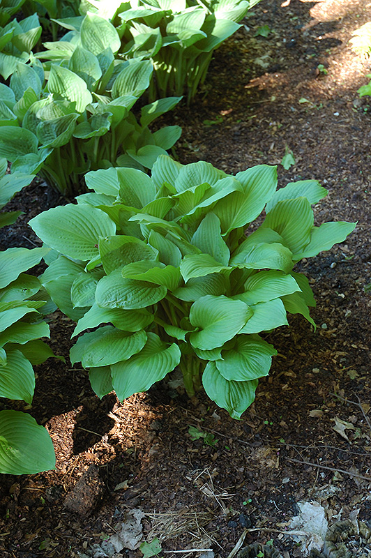 Erromena Hosta will grow to be about 12 inches tall at maturity extending to 18 inches tall with the flowers, with a spread of 24 inches. When grown in masses or used as a bedding plant, individual plants should be spaced approximately 20 inches apart. Its foliage tends to remain dense right to the ground, not requiring facer plants in front. It grows at a medium rate, and under ideal conditions can be expected to live for approximately 10 years. As an herbaceous perennial, this plant will usually die back to the crown each winter, and will regrow from the base each spring. Be careful not to disturb the crown in late winter when it may not be readily seen!