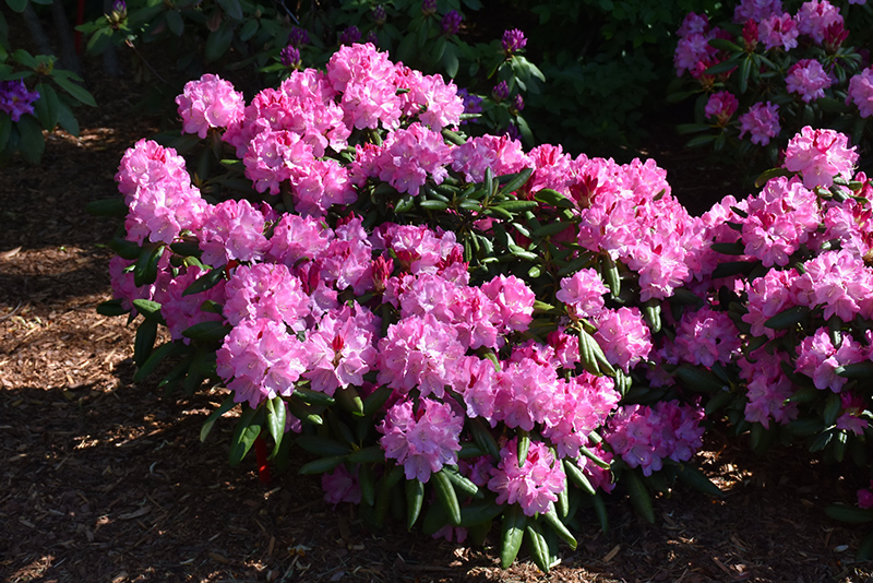 A showy broadleaf evergreen rhododendron with vivid pink flowers in spring and a mounded habit; thrives well in warm southern climates; best with some shelter, absolutely must have well-drained, highly acidic and organic soil