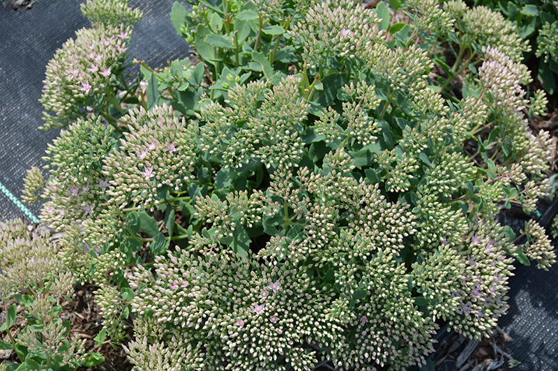 Rock Star Stonecrop will grow to be about 8 inches tall at maturity extending to 12 inches tall with the flowers, with a spread of 30 inches. When grown in masses or used as a bedding plant, individual plants should be spaced approximately 24 inches apart. Its foliage tends to remain low and dense right to the ground. It grows at a fast rate, and under ideal conditions can be expected to live for approximately 15 years. As an herbaceous perennial, this plant will usually die back to the crown each winter, and will regrow from the base each spring. Be careful not to disturb the crown in late winter when it may not be readily seen!