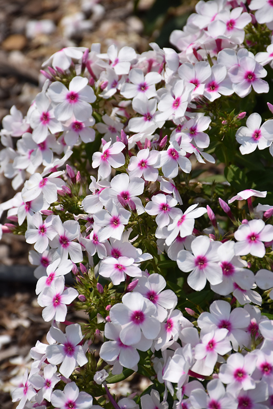 Famous™ White Eye Garden Phlox is a dense herbaceous perennial with an upright spreading habit of growth. Its medium texture blends into the garden, but can always be balanced by a couple of finer or coarser plants for an effective composition.
