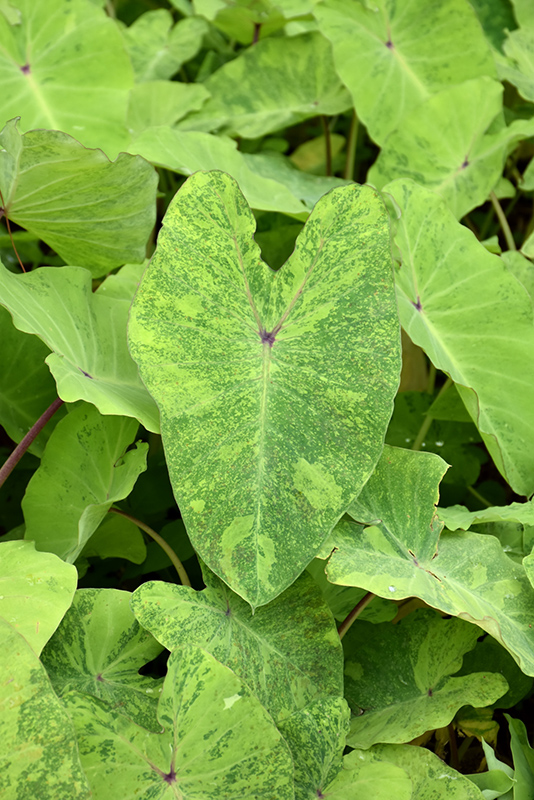 Elena Elephant Ear is primarily valued in the landscape or garden for its cascading habit of growth. Its attractive enormous heart-shaped leaves emerge buttery yellow in spring, turning chartreuse in colour with distinctive purple spots and tinges of forest green throughout the season.