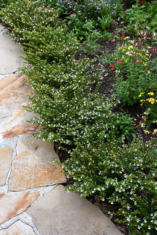 FloriGlory® Maria Mexican Heather will grow to be about 12 inches tall at maturity, with a spread of 18 inches. When grown in masses or used as a bedding plant, individual plants should be spaced approximately 18 inches apart. Its foliage tends to remain dense right to the ground, not requiring facer plants in front. Although it's not a true annual, this fast-growing plant can be expected to behave as an annual in our climate if left outdoors over the winter, usually needing replacement the following year. As such, gardeners should take into consideration that it will perform differently than it would in its native habitat.