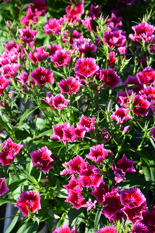 Diamond Crimson Picotee Pinks is a fine choice for the garden, but it is also a good selection for planting in outdoor pots and containers. It is often used as a 'filler' in the 'spiller-thriller-filler' container combination, providing a mass of flowers and foliage against which the thriller plants stand out. Note that when growing plants in outdoor containers and baskets, they may require more frequent waterings than they would in the yard or garden.