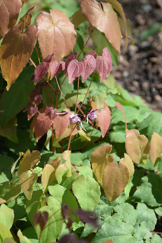 Pink Elf Barrenwort features delicate nodding pink star-shaped flowers with rose eyes and shell pink spurs rising above the foliage from mid to late spring. Its attractive heart-shaped leaves emerge burgundy in spring, turning green in colour with distinctive coppery-bronze edges. As an added bonus, the foliage turns a gorgeous dark red in the fall.